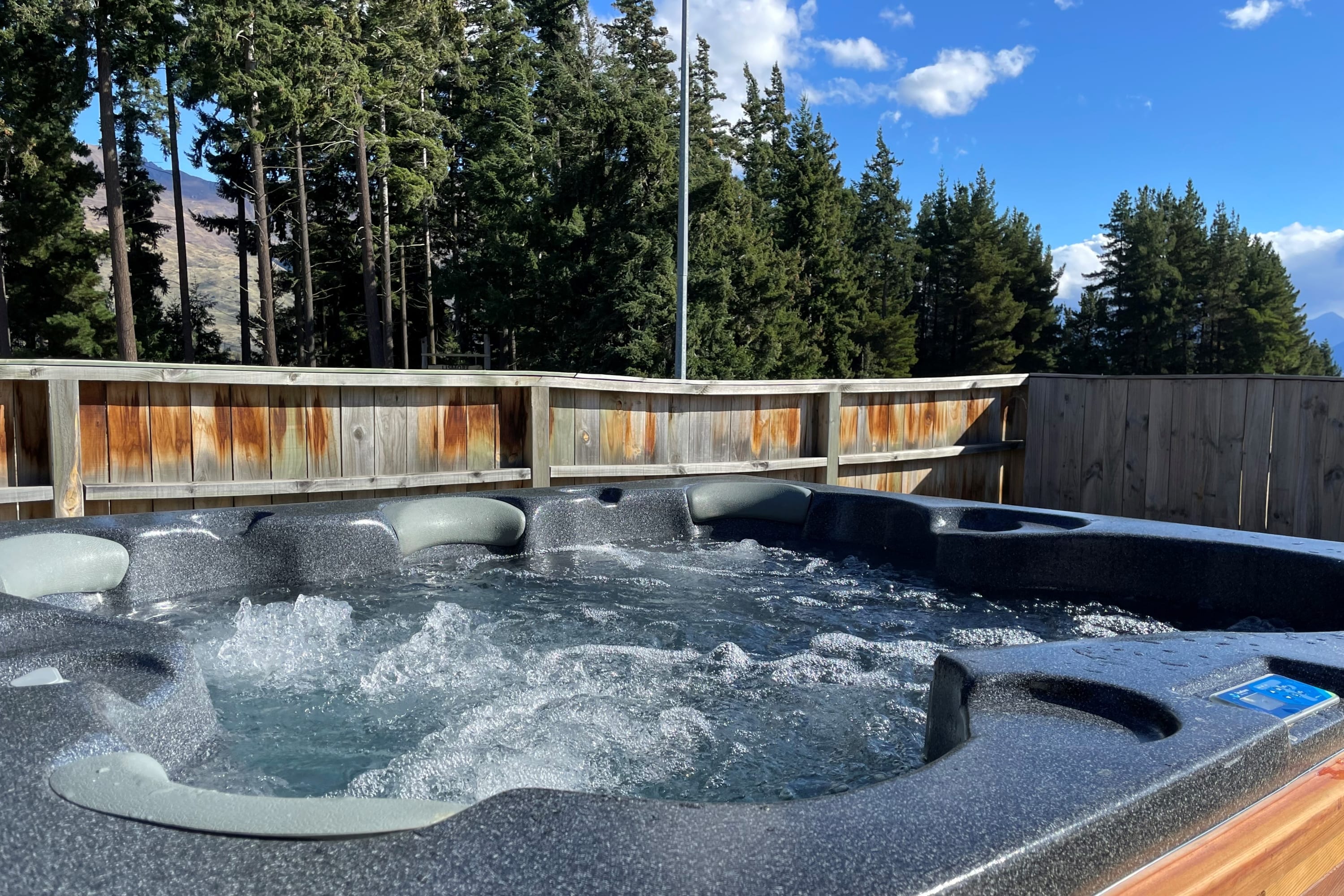 Lovely place to stay with good view of mountains. A little road noise if you are not used to it but manageable. Walkable into town but a bit of a hill on way back up. Good space, good water pressure and comfy bed, kids loved the spa. Thank you for a good stay.- Anonymous , Stayed