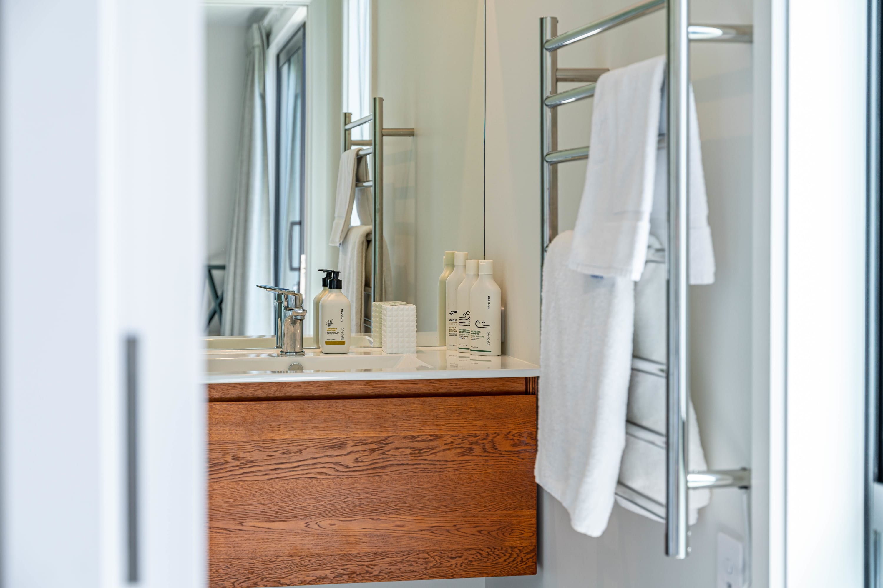 This is self-catering accommodation however for your convenience, we will get you started with a few rolls of toilet paper, hand soap, dishwashing liquid and dishwasher detergent along with a couple of tea towels, dishcloth, 2 bin liners and laundry liquid. We use only eco-friendly cleaning products. Sheets and towels are provided. We recommend you bring your own beach towels.