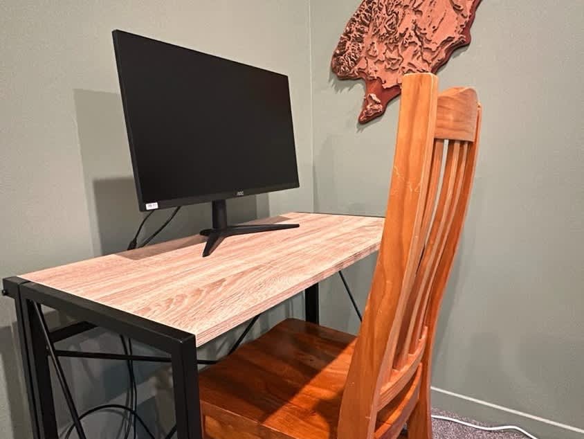 - Desk and monitor