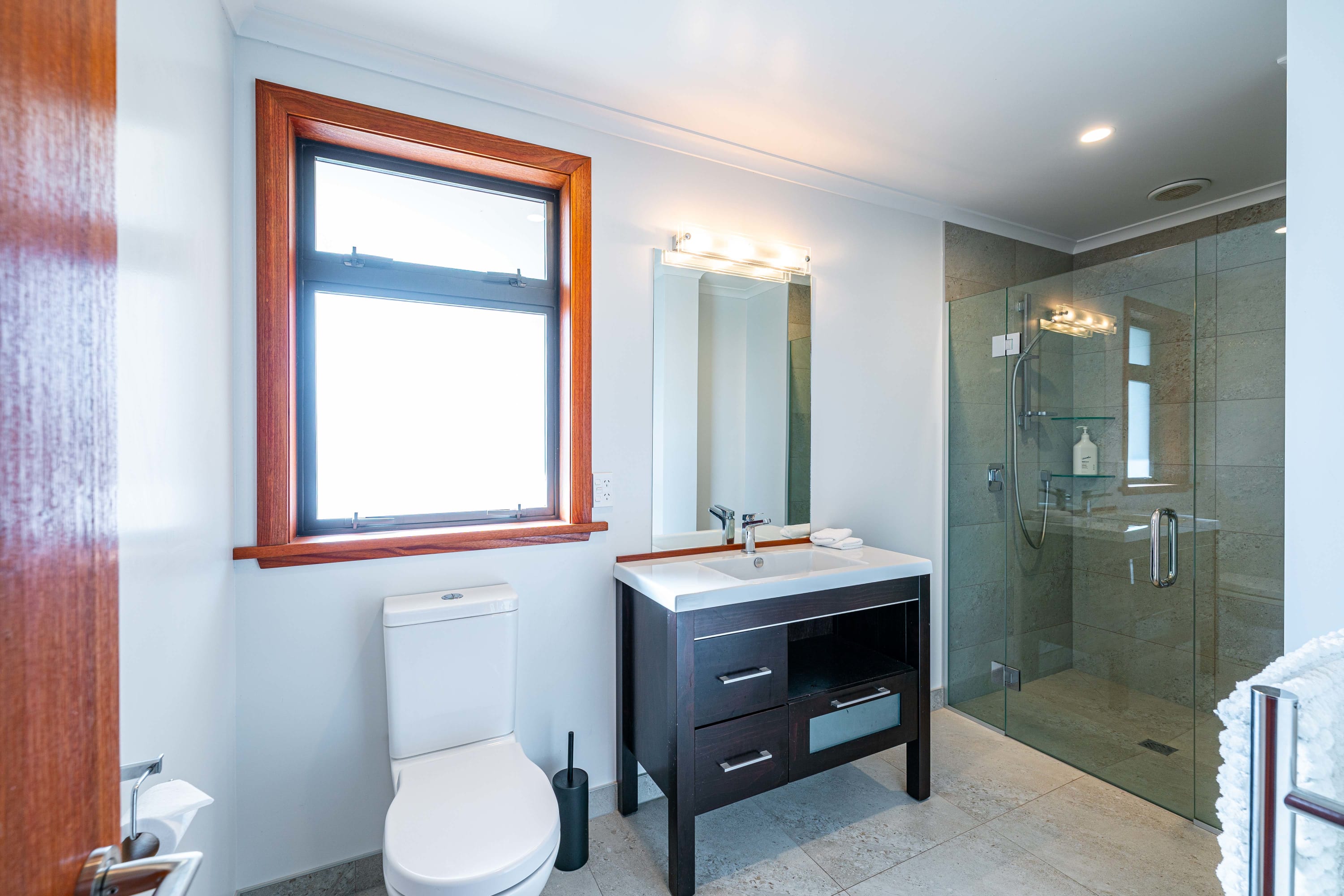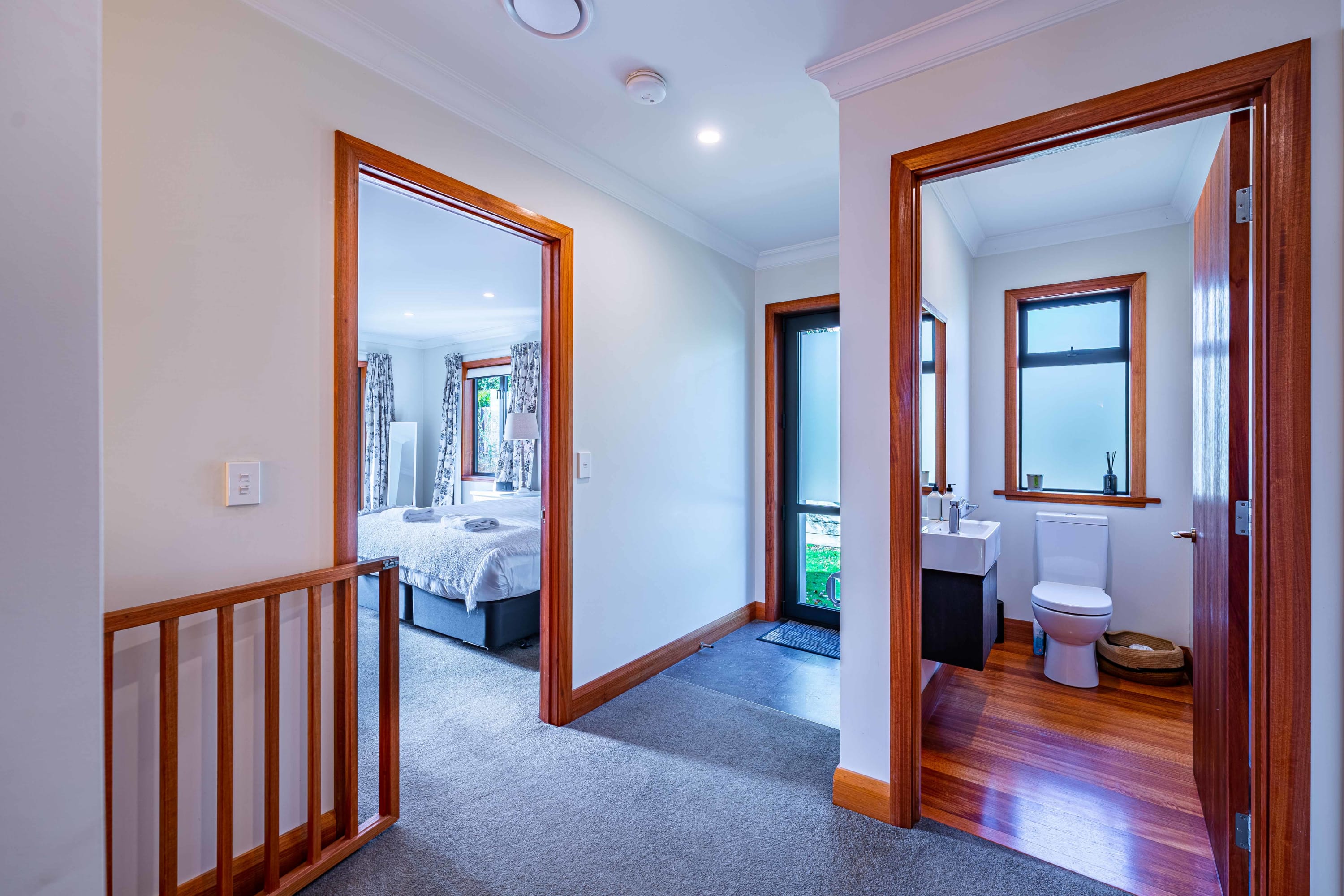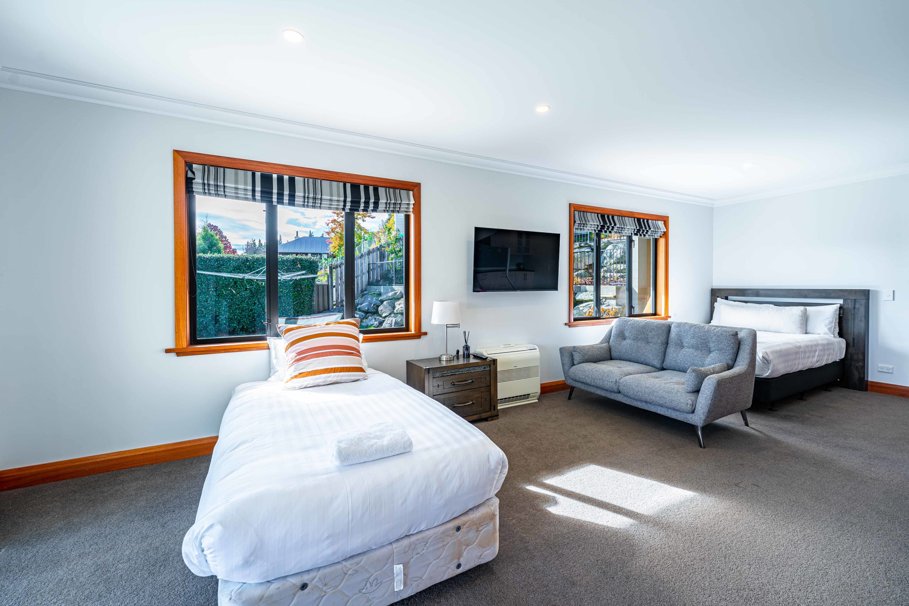 The master bedroom is beautifully appointed with plush bedding and linens, ensuring that you get the best night's sleep and boasts and ensuite bathroom and a balcony that overlooks the stunning lake and mountain scenery. Two other upper level bedrooms feature king bedrooms. The fourth bedroom is set up as a separate suite with a queen and king single and a bathroom.