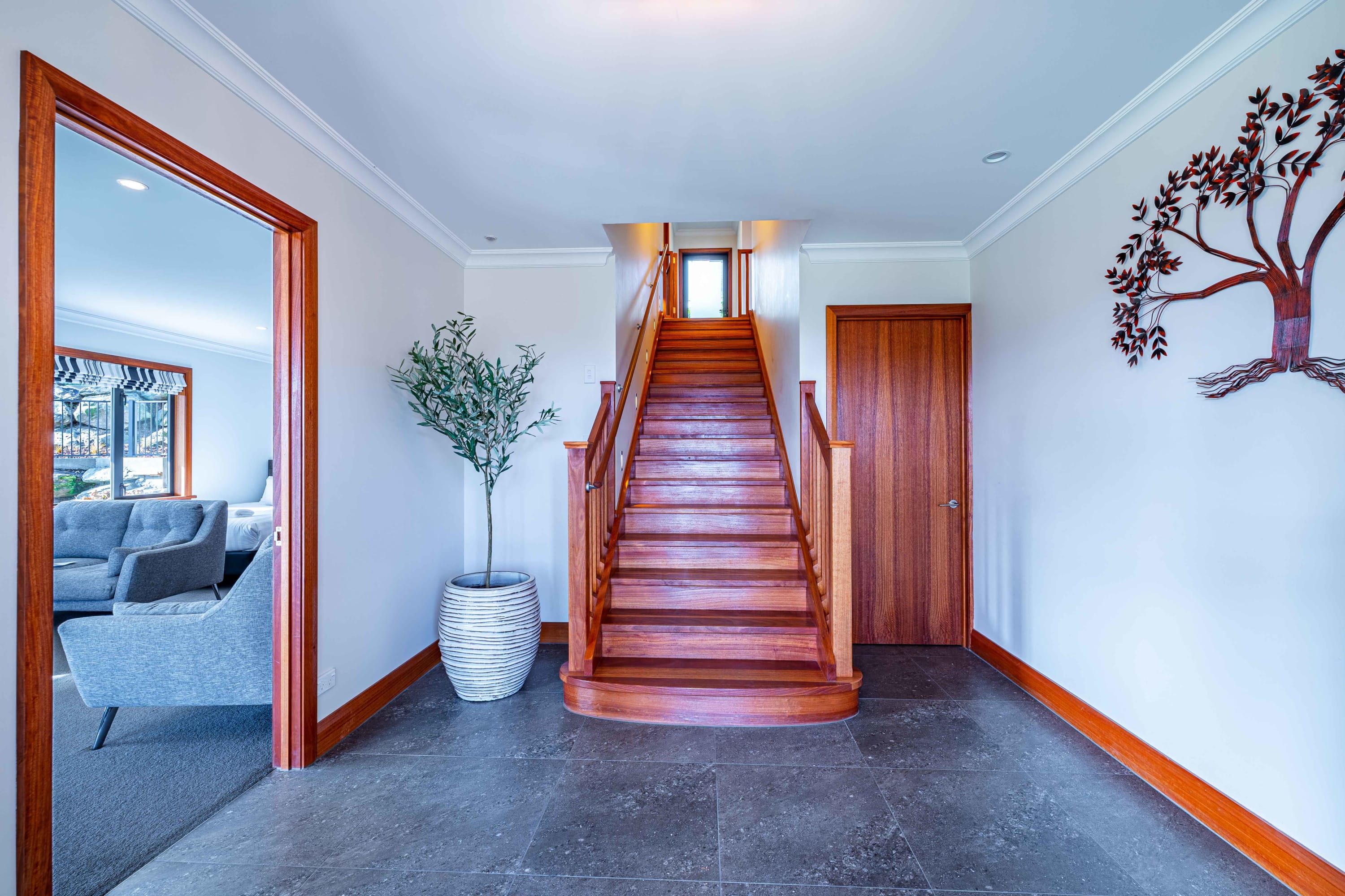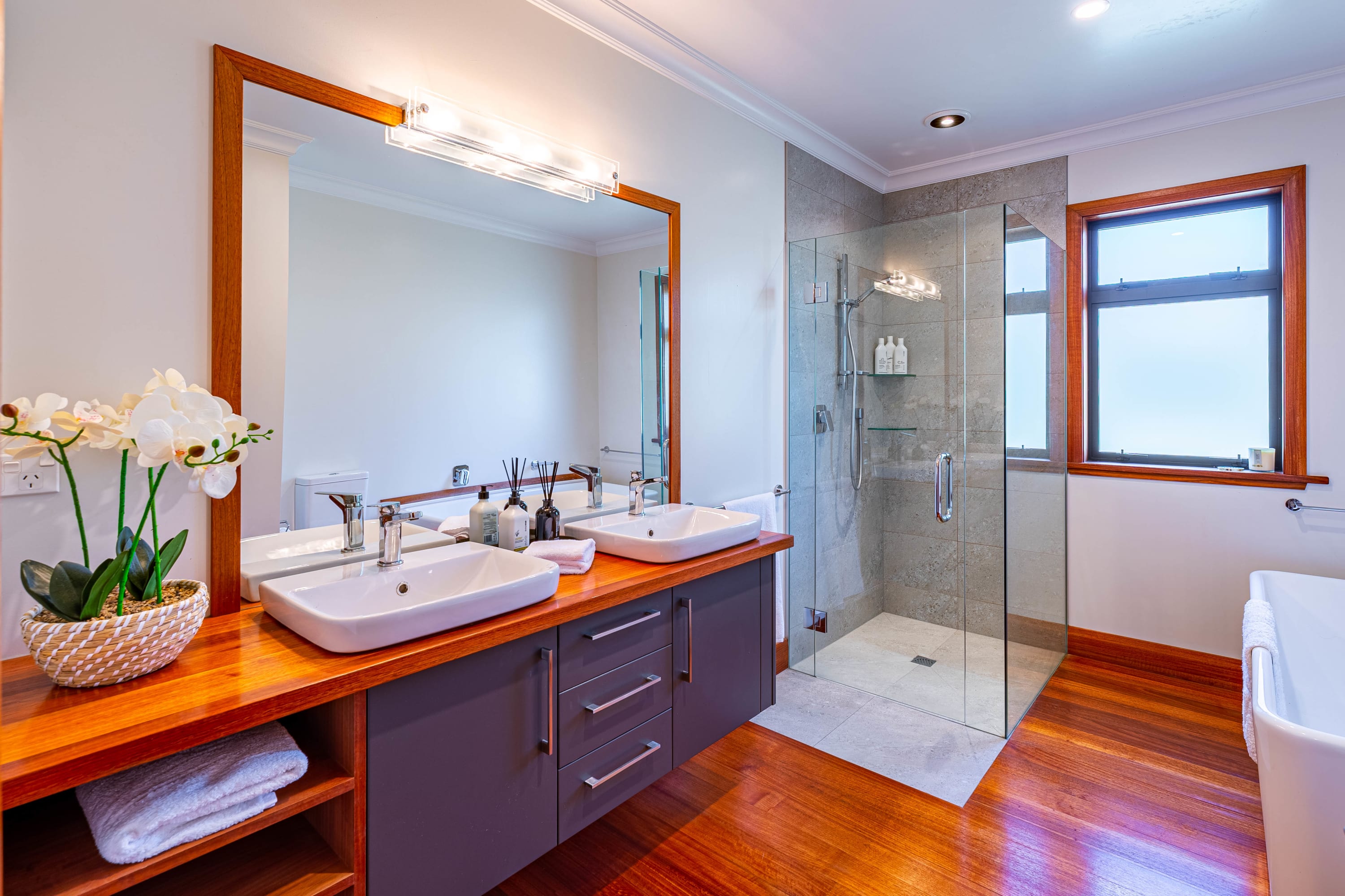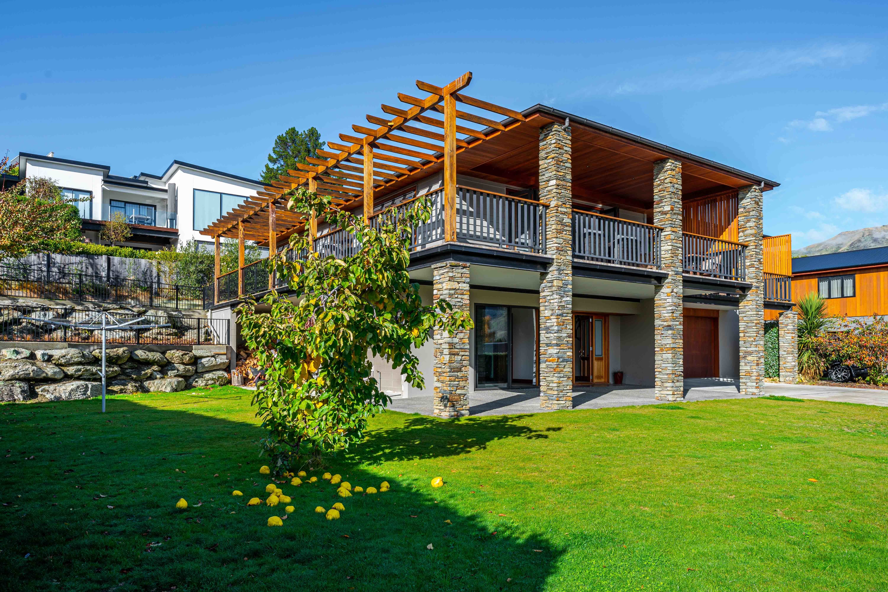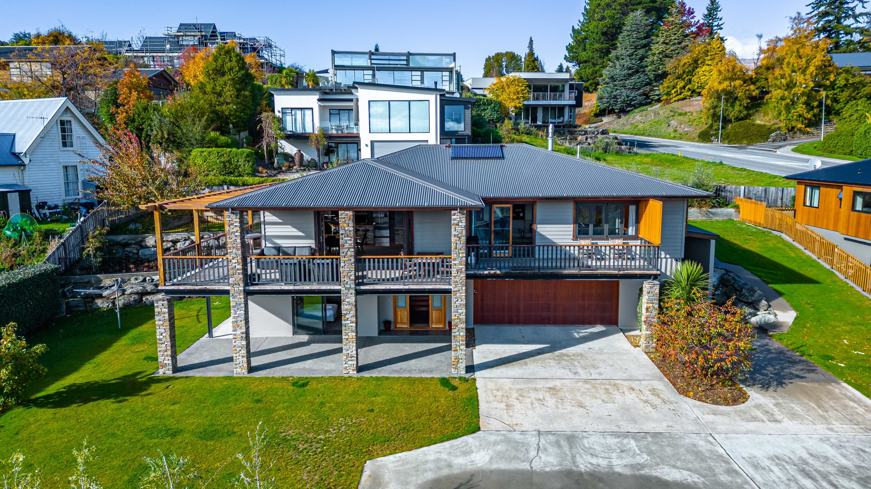The master bedroom is beautifully appointed with plush bedding and linens, ensuring that you get the best night's sleep and boasts and ensuite bathroom and a balcony that overlooks the stunning lake and mountain scenery. Two other upper level bedrooms feature king bedrooms. The fourth bedroom is set up as a separate suite with a queen and king single and a bathroom.