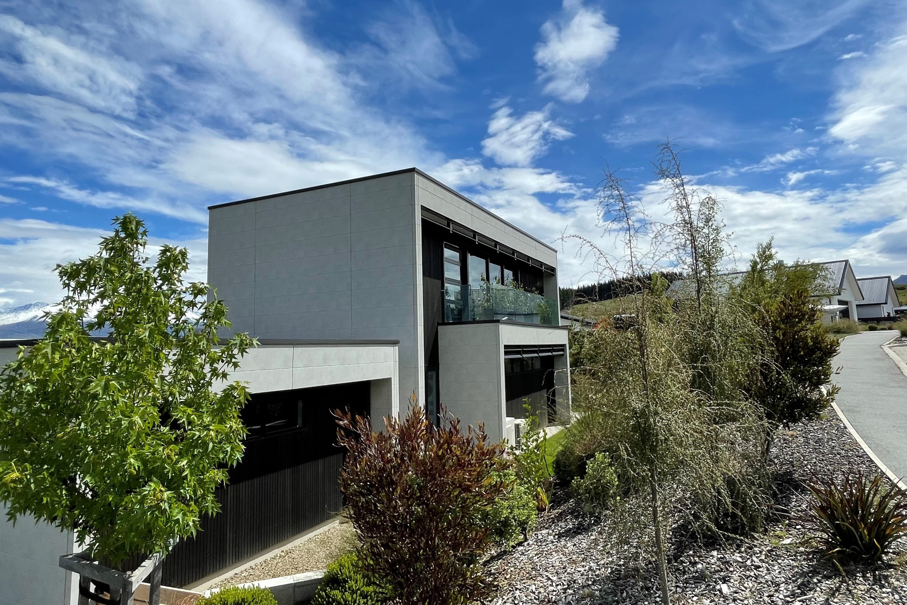 We are thrilled to present this exquisite modern holiday home. This two-story new build graces an elevated position, offering unparalleled views of the lake and mountains in a sumptuous setting.