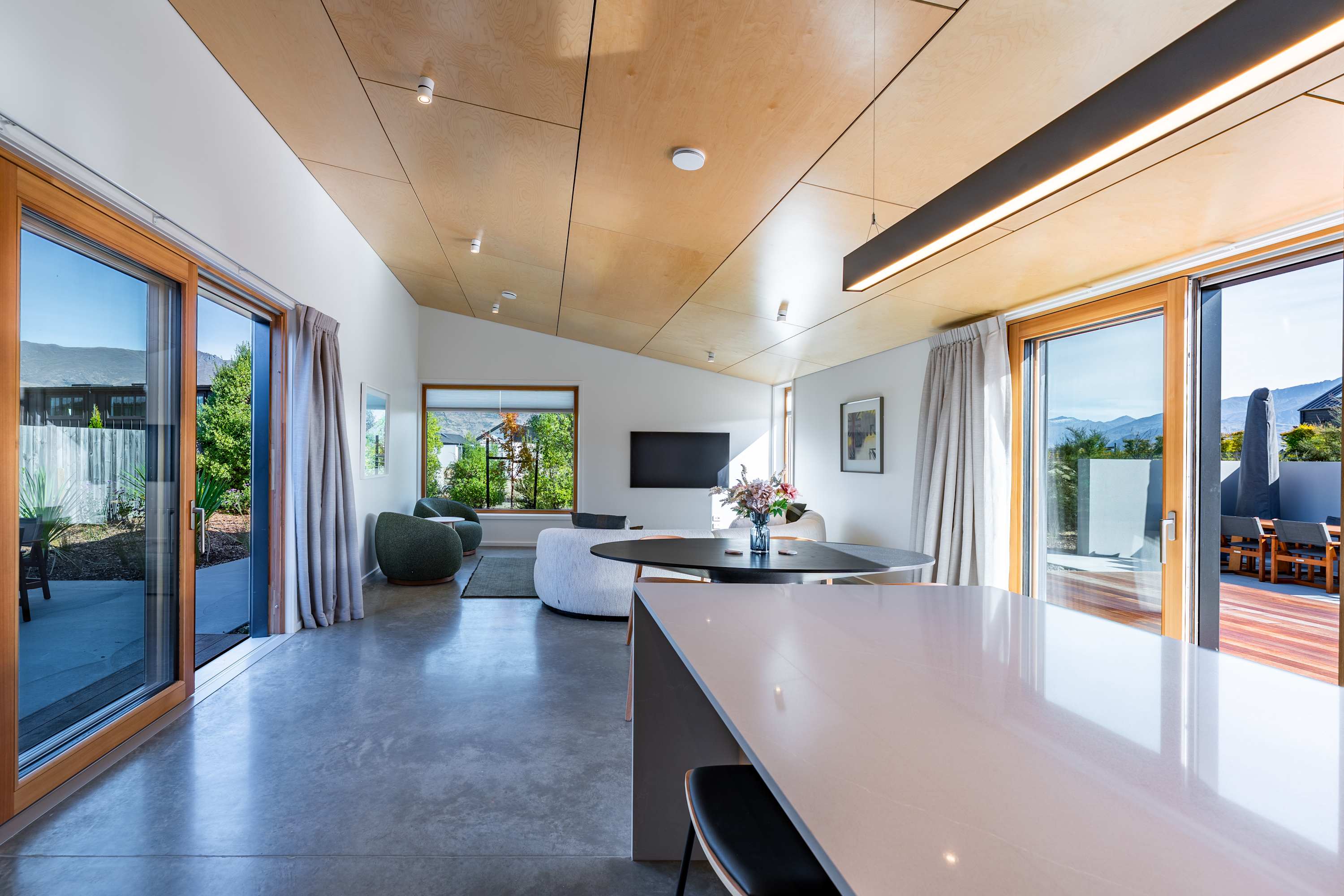 Sliding doors open seamlessly to the outdoor patio, where you’ll find a dining setting and BBQ — ideal for enjoying those long Central Otago evenings.